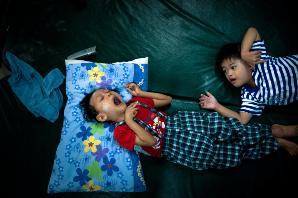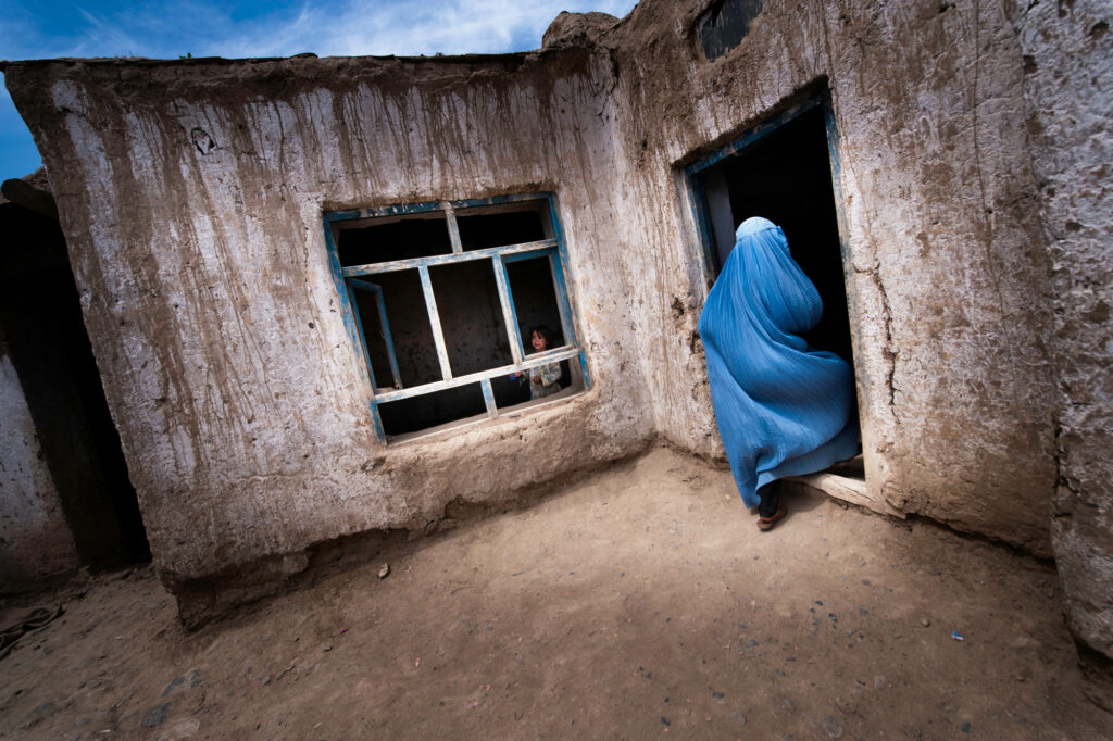 A woman in a blue burqa enters her home as a little girl peers out from a windowless room. Scenes like this reflect the layered realities of Afghan life, where women often navigate both tradition and hardship while children grow up within the confines of poverty and uncertainty.Karen State, Burma, 2008.