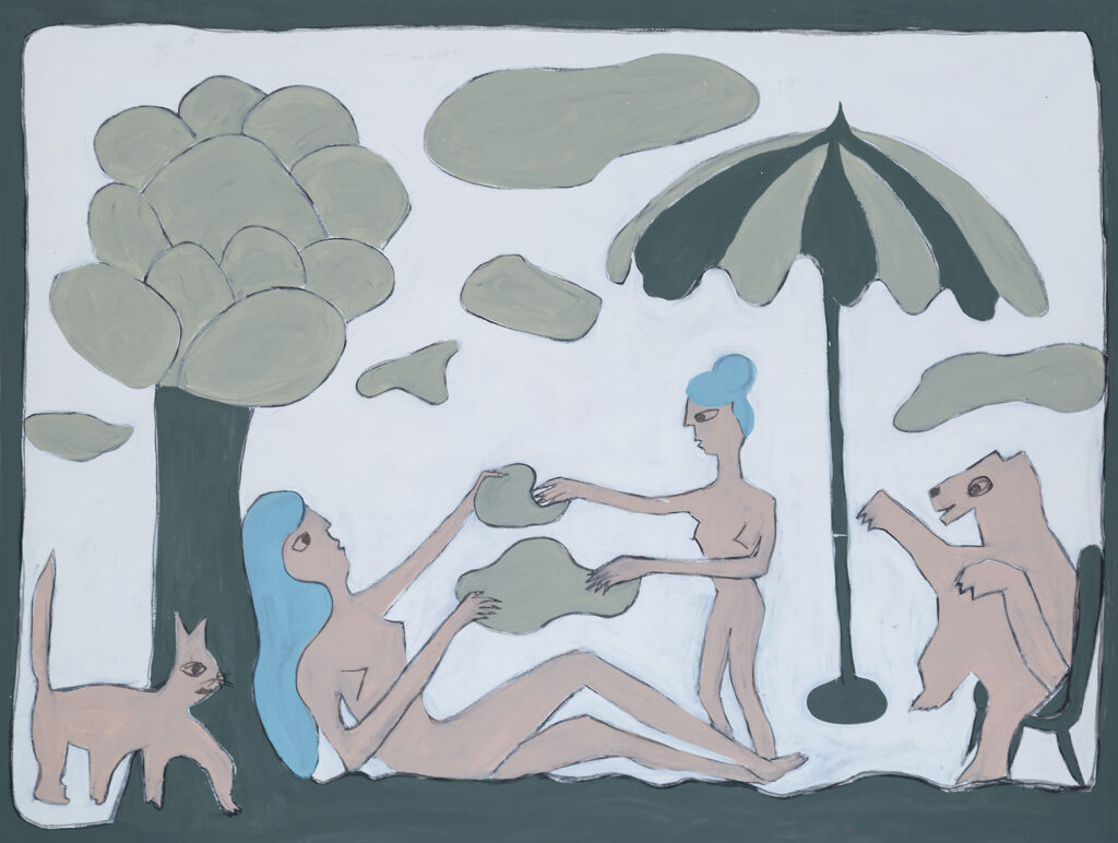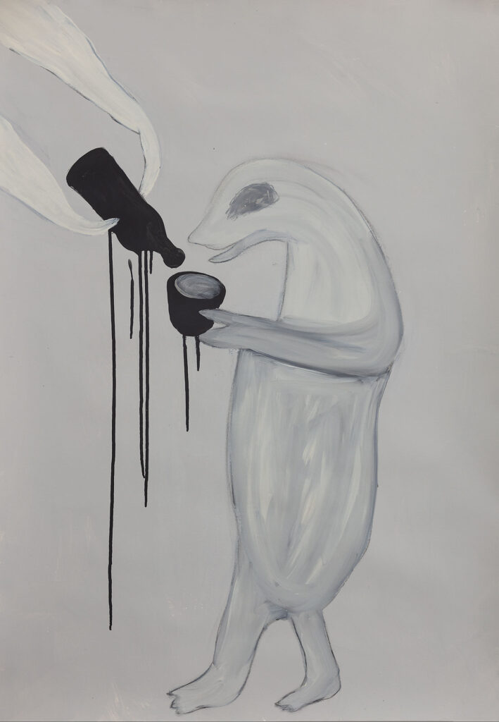 Edhe punët tjera të ekspozitës janë ilustrime me narrativa të ndryshme, që Katja Berger i realizon me një stil të “dorës së lehtë”, e fokusuar në rrëfime pamore fabuloze, si përallëza alegorike ose edhe karikaturale me njerëz dhe kafshë. Aji i paraqet këto si ndodhi të përditëshmërisë, vizualisht me vija të thjeshtëzuara, por që i begaton me një fantazi të kontrolluar të raporteve paksa të përçudnuara sikur që ndodh në ëndrra. Te vizualizimi ajo sjell edhe shenja të ndjesive emocionale, herë të dashurisë dhe ngrohtësisë, herë të kërcënimeve dhe frikëndjellëse. Vetëm se qasja e Berger gjithnjë e ka një pikëvështrim, të themi, “vajzëror” me gërshetim të brengës me shpresën. Gruaja është motivi më i shpeshtë në veprat e saj, lidhur me raportet e saj me atë që e rrethon – qytetin, njërëzit, kafshët, bimët. Fabulat e Berger megjithatë janë të së sotmës, jo ezopiane ose të vëllezërve Grimm. Mirëpo, në strukturën e tyre mesazhet e saja janë si fabulat klasike. Te vizualizimi i përrallëzave të saja mesazhet janë të zbutura, jo dramatizuese. Ajo e apelon kujdesin, jo frikësimin paralizues.