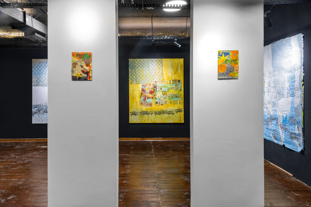 Thought Lottery is a visual and conceptual exploration of tarot as both an ancient system of divination and a continuously evolving cultural artifact. This exhibition presents a constellation of large-format silk-screened tarot graphics on canvas and found posters, juxtaposed with found images—including an ancient wooden Odin icon and graphic waveforms—alongside painted paperworks that reinterpret tarot’s iconography. The recurring figure of the wanderer, a central archetype in his work, gx6uides viewers through interwoven narratives of fate, movement, and mysticism.
